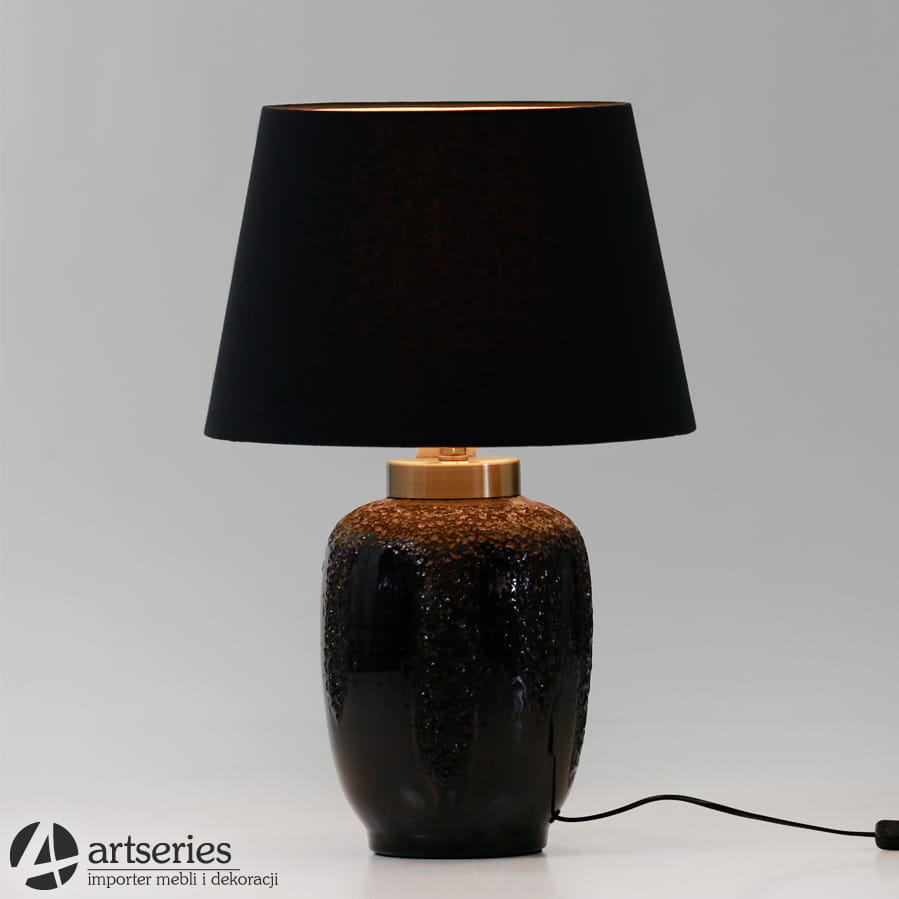 Lampa w barwie głębokiej czerni. Nietypowa, niecodzienna choć do codziennego użytku. Jest to bardzo ciekawa i oryginalna lampa do nowoczesnych wnętrz, dzięki czarnemu abażurowi światło jest delikatne, bardzo nastrojowe i klimatyczne.