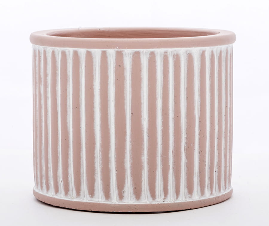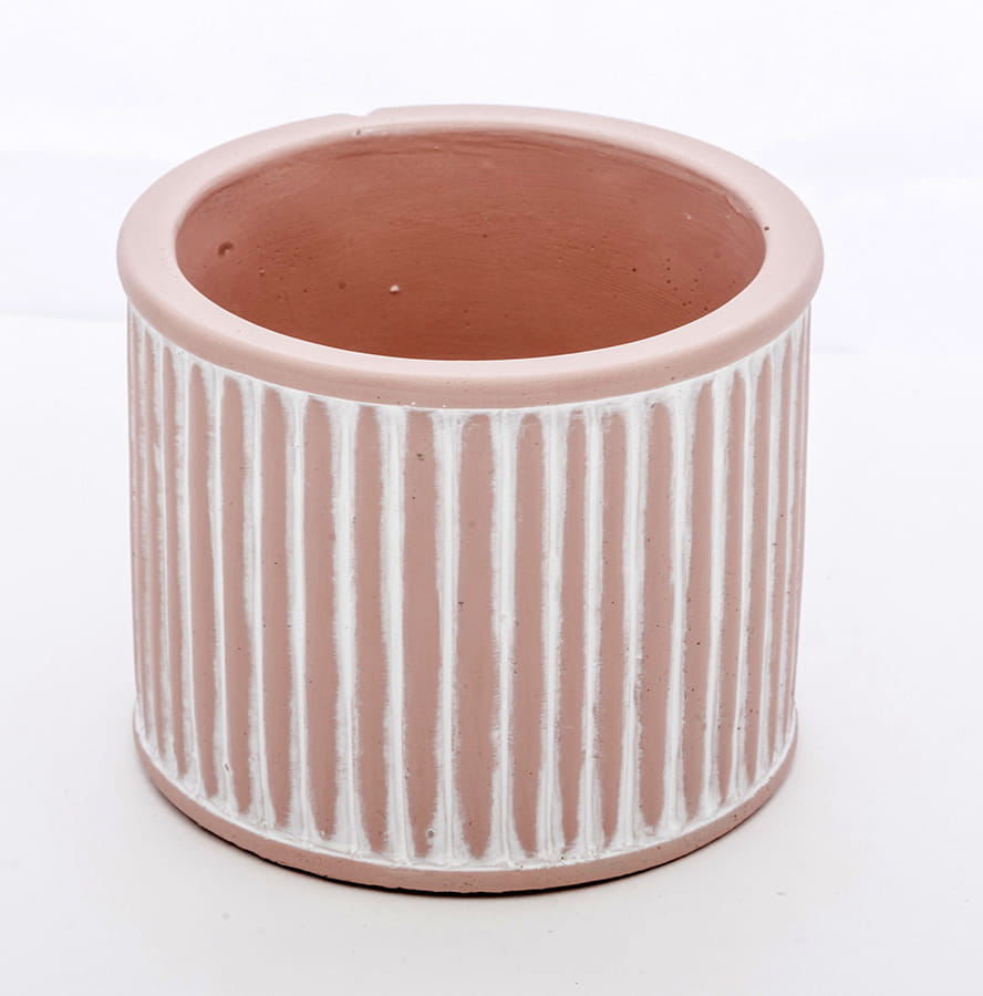 Dekoracyjna osłonka na doniczkę w prostej stylizacji. Prezentuje się ona kolorze ceglanym. Na jej powierzchni bez wątpienia dostrzegasz także białe przebarwienia. Mają one na celu nadanie dekoracji cech rustykalnych oraz wzbogacenie kolorystyki. Wspaniały dodatek na komodę, czy parapet!
