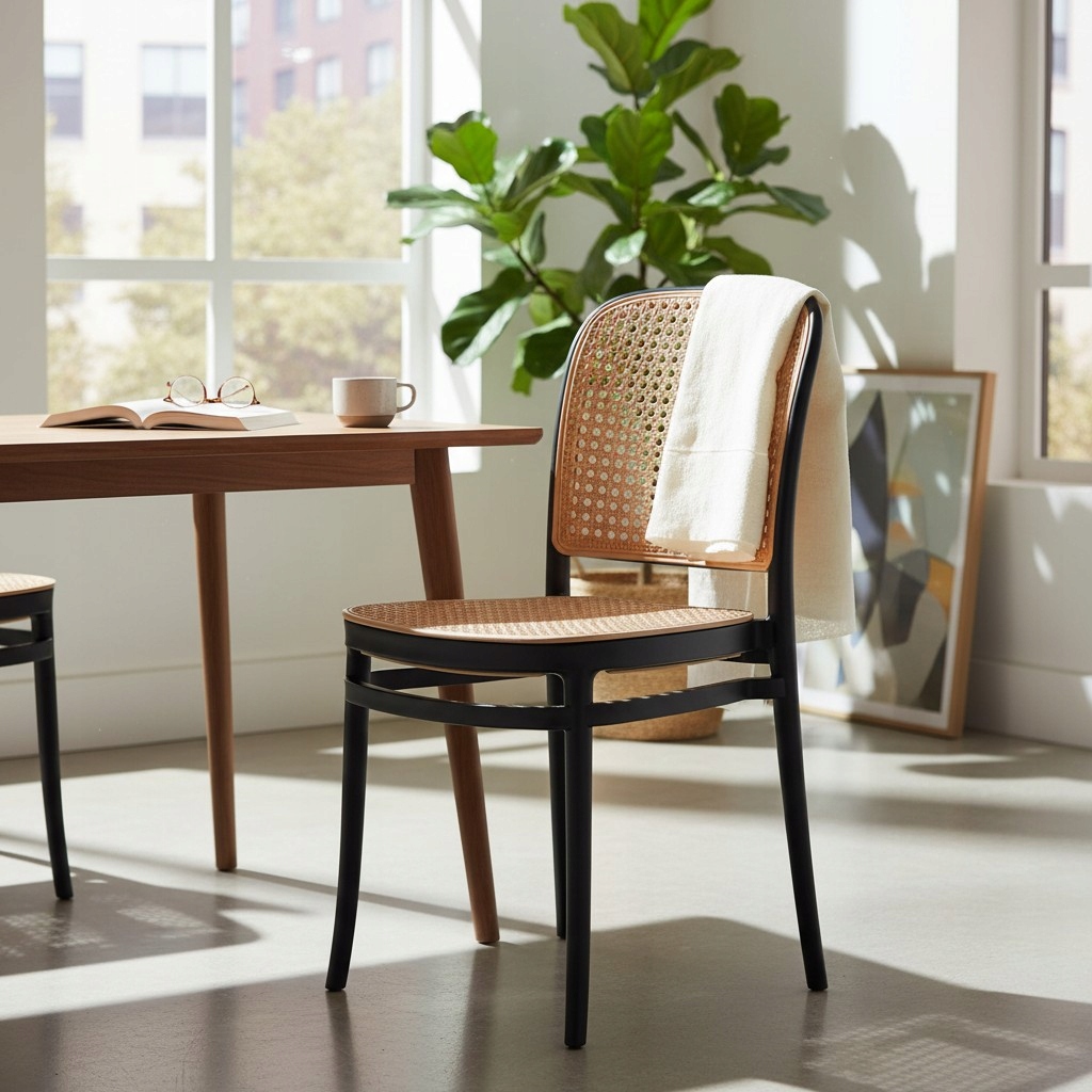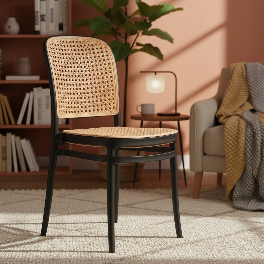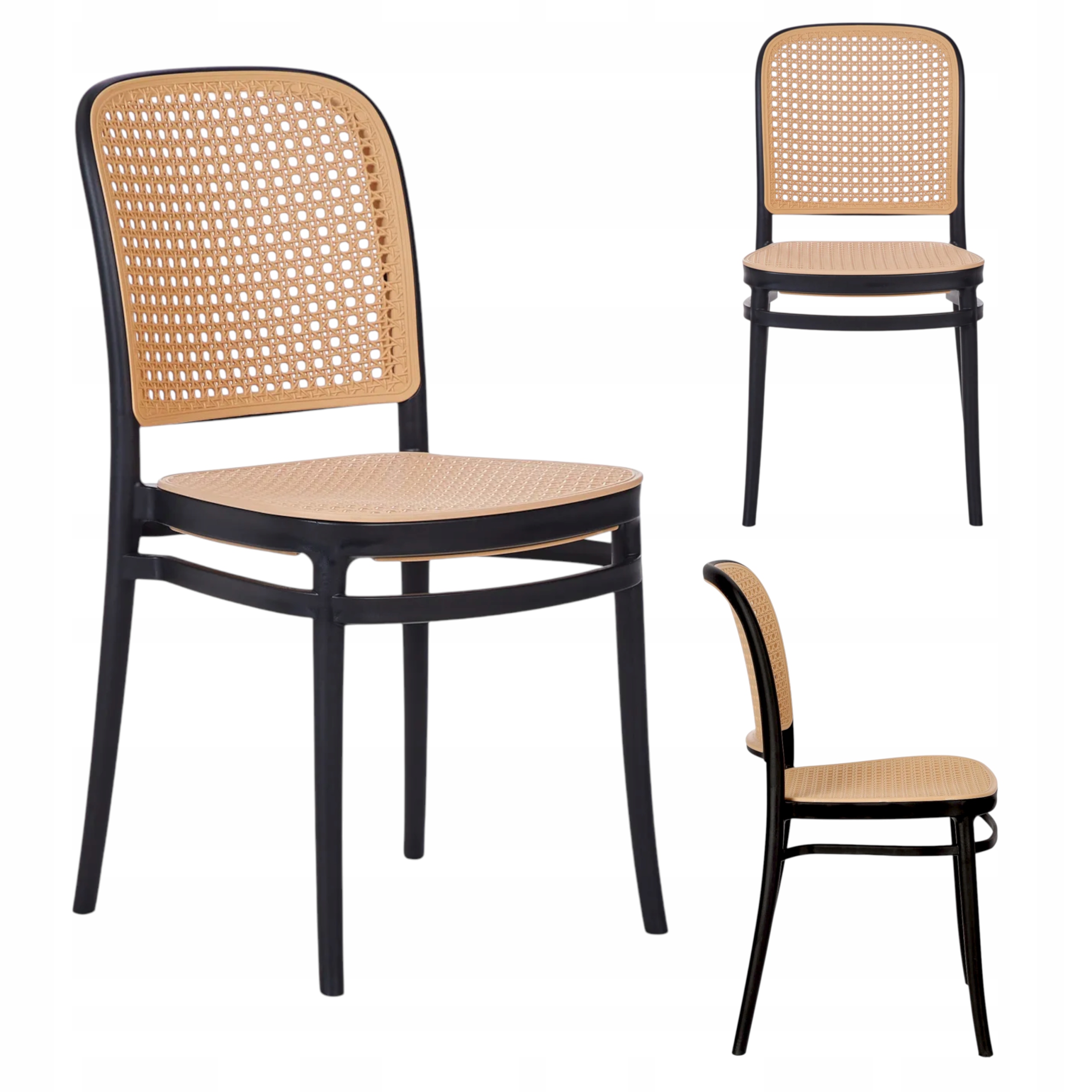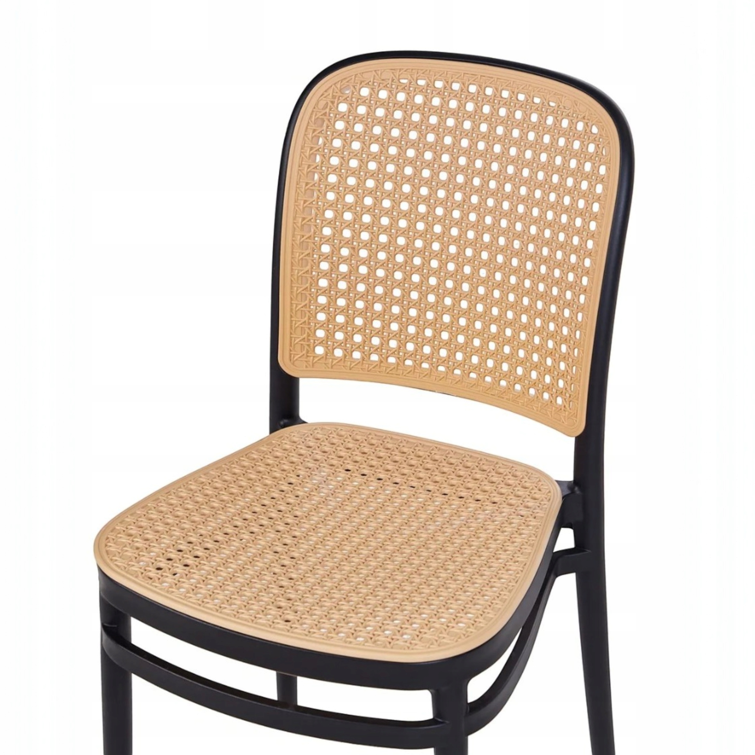Nowoczesne krzesło w eleganckim czarnym kolorze z beżową imitacją rattanu to połączenie designu i funkcjonalności. Kontrastowa kolorystyka nadaje mu wyjątkowego charakteru, dzięki czemu świetnie podkreśli aranżację zarówno wnętrz, jak i przestrzeni zewnętrznych.