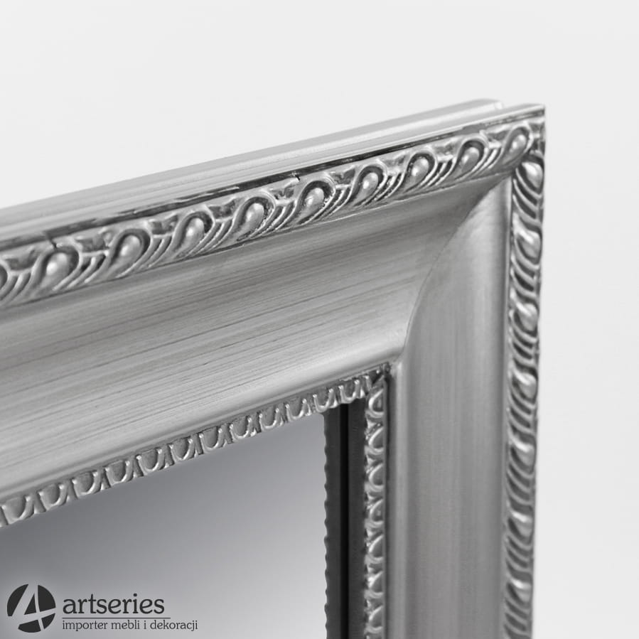 Srebrne lustro stylowe, stylizowane na antyczne, zdobione do sypalni salonu