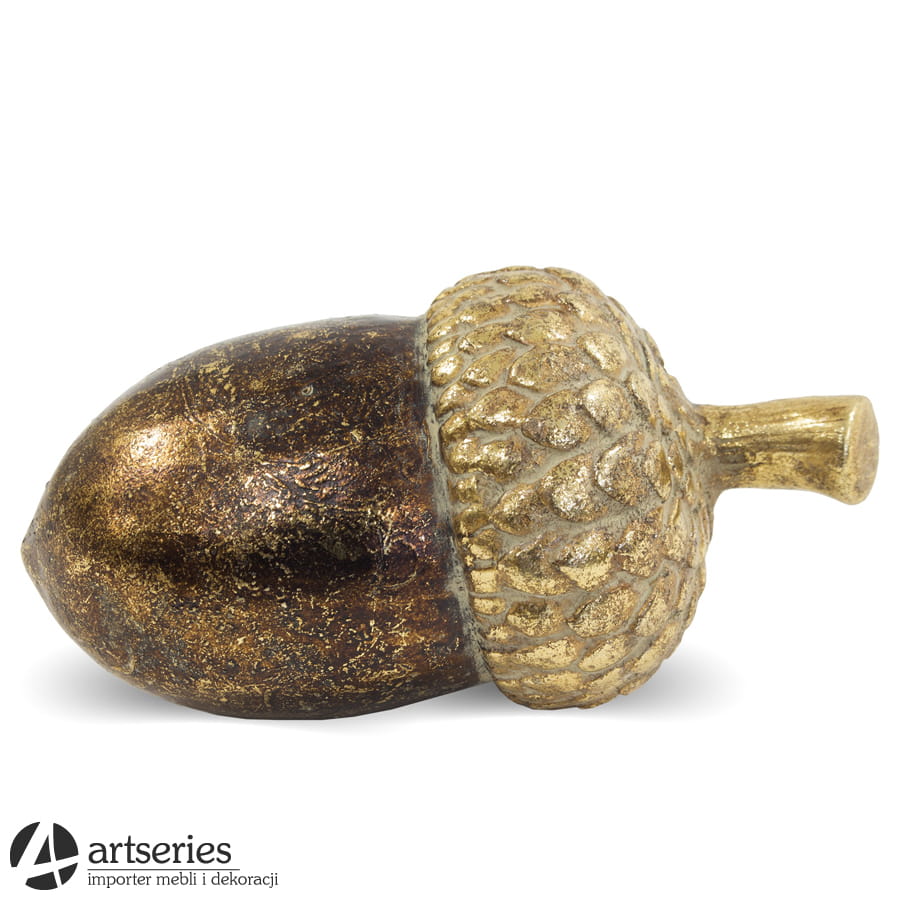 Oryginalna figurka do domu w kształcie żołędzia w kolorze złotym i brązowym polecana do dekoracji w czasie Świąt Bożego Narodzenia.